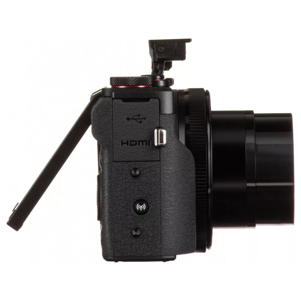 Компактний фотоапарат; Матриця 20.1 Mpx (13.2×8.8 мм);  Фокусна відстань 24-100 мм, Оптичний зум 4.2х;  Діафрагма f/1.8-2.8; Запис відео 3840×2160 (30fps); Чутливість ISO авто, 100-12800; РК-екран 3.0″; Поворотний екран; Wi-Fi, NFC, GPS; Розміри 105.5 х 60.9 х 41.4 мм, 304 г; Чорний.